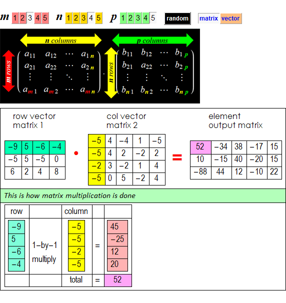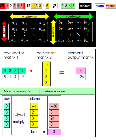 Mathematically, we have two common cases of matrix - vector dot product: